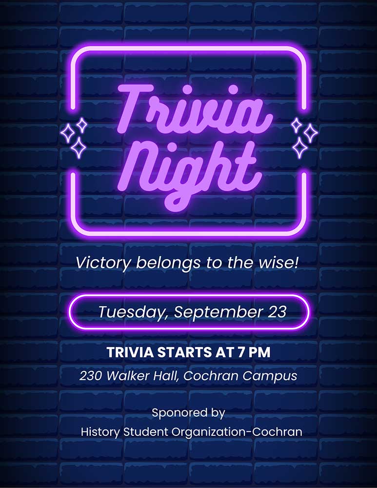 HSO Cochran Trivia Night Time: 7:00PM Join us for a fun night of trivia. Contact: Dr. Tracie Provost |